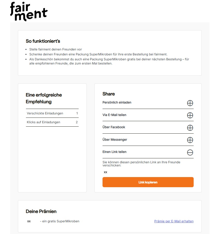 Mit unserem Freunde-Empfehlungsprogramm kannst du ganz einfach Menschen, die dir wichtig sind, von fairment erzählen - und ihr profitiert beide davon!